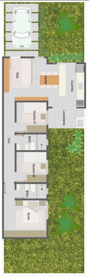 3 Dormitórios, sendo 1 suíte1 Banheiro2 Vagas1 Cozinha1 Sala de jantar1 Sala de estar1 Área de serviço